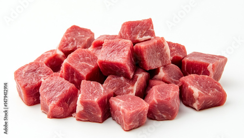 Fresh Meat Cubes on White Background