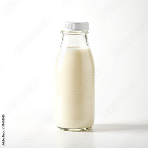 Fresh Milk in Glass Bottle with Minimalist White Background