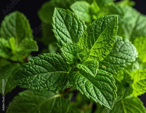 Fresh Mint Leaves on Dark Background for Culinary and Herbal Use