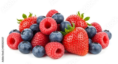 “Fresh Mixed Berries – Strawberries, Blueberries, and Raspberries on White Background”