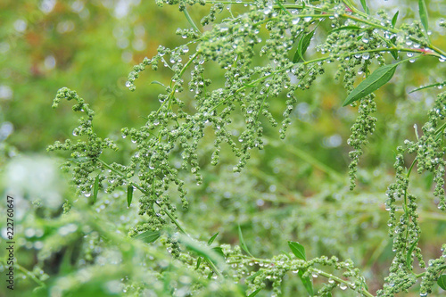 Fresh morning dew on a spring grass in early morning. Sunny day concept. Natural background.