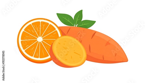 Fresh orange and carrot illustration on a plain background from a front viewpoint