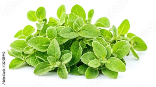 Fresh oregano sprigs with vibrant green leaves on a white surface