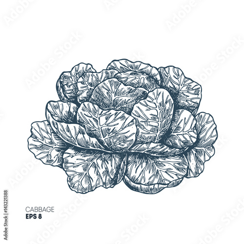 Fresh organic vegetables vintage engraved design template. Botanical cabbage illustration. Vector illustration