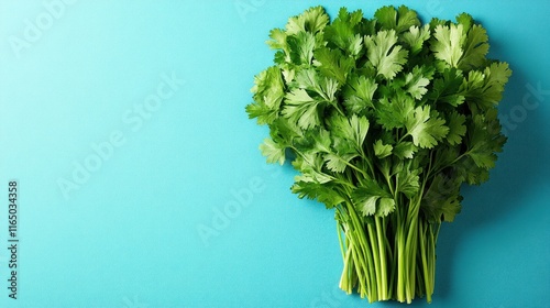 Fresh parsley bunch on blue background.