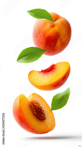 Fresh Peaches with Slices on White Background
