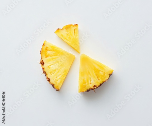 Fresh pineapple slices arranged artistically on a plain white background for a bright, vibrant presentation