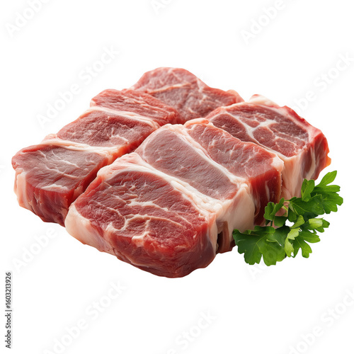 Fresh raw pork chops with parsley garnishing ready for culinary preparation and cooking