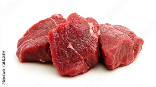 Fresh Raw Red Meat Cuts on White Background for Culinary Use