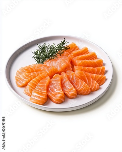 Fresh raw salmon on a white plate ready for sushi or sashimi