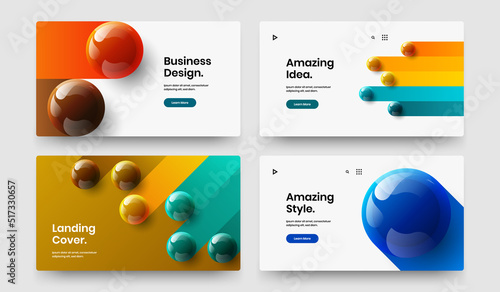 Fresh realistic balls company identity template collection. Minimalistic front page vector design layout set.