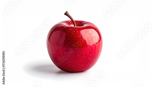 Fresh Red Apple with Water Droplets on White Background Minimalist Studio Lighting Focus on Texture and Shadow for Clean Product Photography