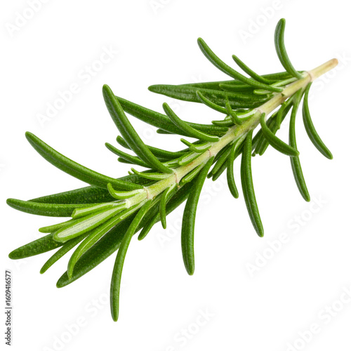 Fresh Rosemary Herb Branch with Green Leaves Isolated on White Background