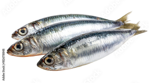 Fresh sardines on a white isolated background, ready for cooking or serving, healthy seafood option.