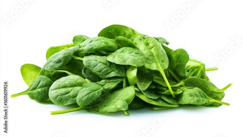 Fresh spinach leaves on white background. AI image