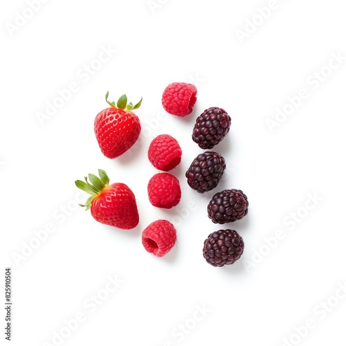 Fresh strawberries, raspberries, and blackberries isolated on white background. A healthy assortment of delicious berries for a vibrant, nutritious snack.