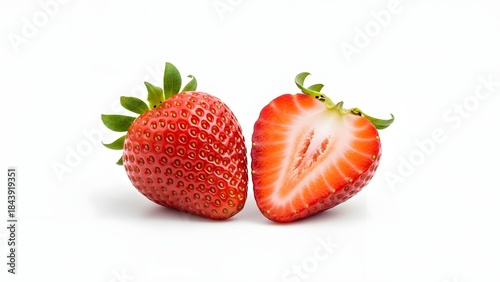 Fresh Strawberry Whole and Cut Isolated on White Background