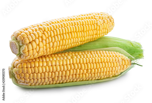 Fresh sweet corn isolated on white background. Clipping path