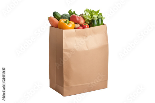 Fresh vegetables in a paper bag isolated on white and transparent background