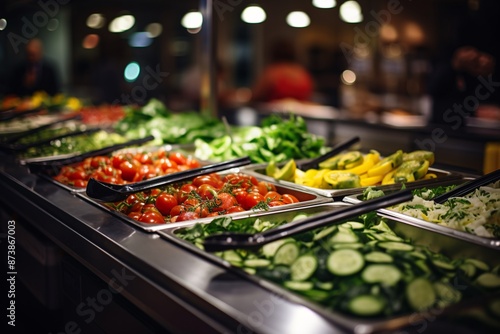 Fresh vegetables in a salad bar at a restaurant. Selective focus