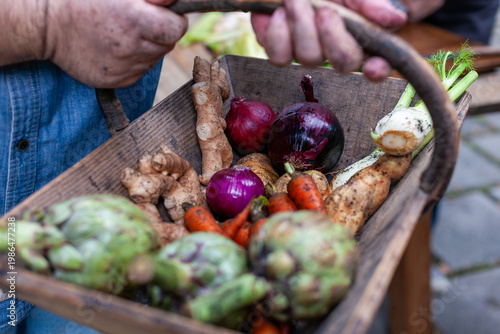 Fresh vegetables in rustic basket
