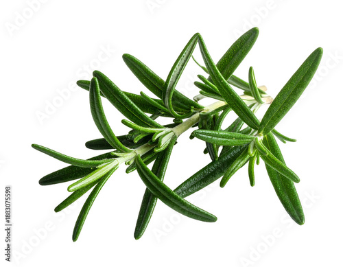 Fresh, vibrant green herb sprigs with slender leaves, isolated on a white background