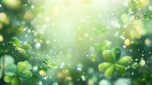 Fresh, vibrant shamrock backdrop with bokeh, displaying a joyful, celebratory atmosphere.