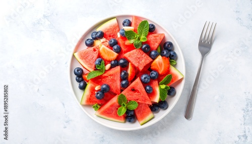 Fresh Watermelon and Blueberry Fruit Salad.