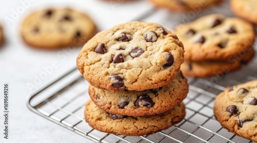Freshly Baked Chocolate Chip Cookies on Cooling Rack