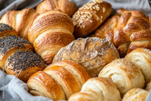 Freshly Baked Croissants and Breads in a Soft Linen Basket