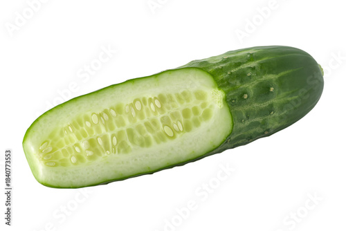 Freshly cut cucumber showing inner details and textures . Isolated on transparent background, png