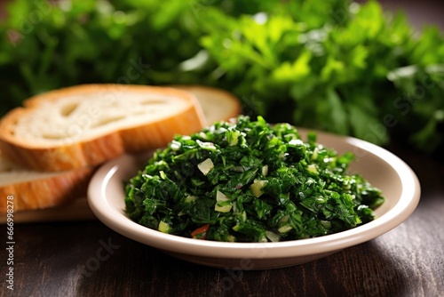 freshly cut parsley beside a plate of bruschetta