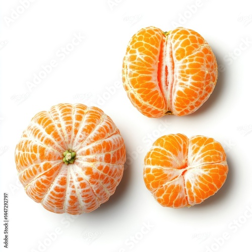 Freshly peeled mandarin oranges Close-up view of three halves