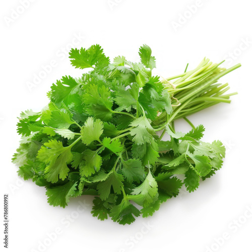 Freshly Picked Green Cilantro Bunch Isolated on a Clean White Background