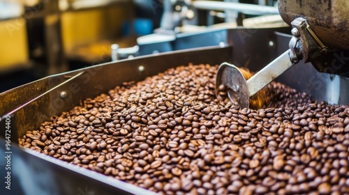 Freshly Roasted Coffee Beans in Industrial Machine