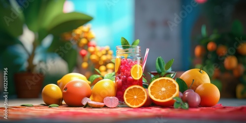 Freshy Fruit Juice Background with Various Fruits, Summer Festive Time. Generative Ai
