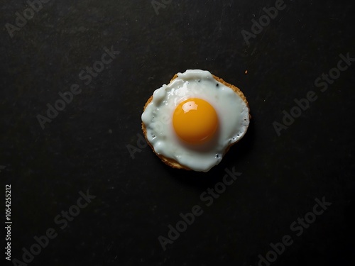 Fried egg on a black surface with text space.