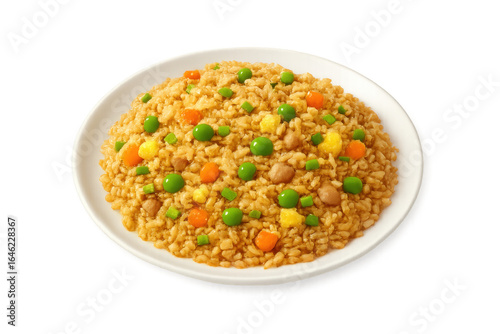 Fried rice with vegetables and meat on transparent background