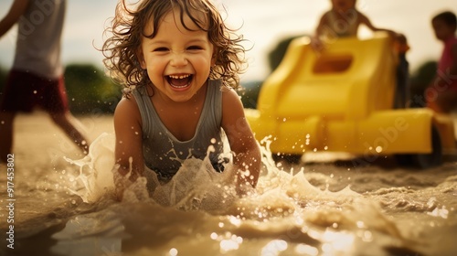 Friends and family enjoying a cheerful beach vacation, splashing and smiling in the water.