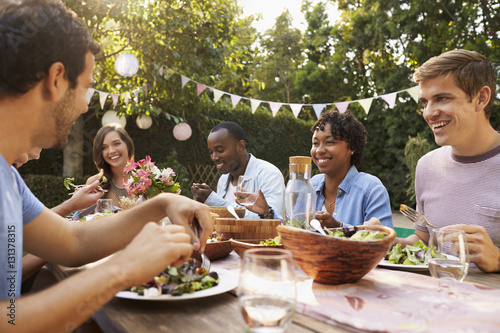 Friends Eating And Drinking Around Table At Outdoor Party
