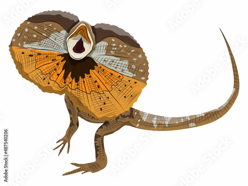 Frilled dragon or frilled agama with open hood. Wild reptiles of Australia and New Guinea. realistic vector animal