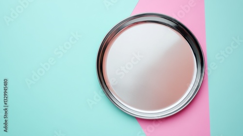 From a symmetrical overhead perspective, the metallic muffin tray stands out against a white background, its empty cups and sleek texture embodying simplicity and a professional look
