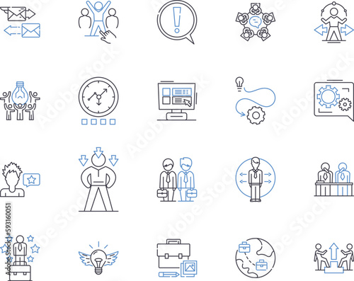 Front office outline icons collection. Front-Office, Reception, Desk, Office, Lobby, Concierge, Counter vector and illustration concept set. Service, Telephone, Clerk linear signs