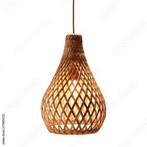 front view of Rattan Woven hanging pendant lamp isolated on a white transparent background