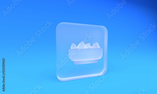 Frosted glass Nachos in bowl icon isolated on blue background. Tortilla chips or nachos tortillas. Traditional mexican fast food menu. Square frosted glass button. 3D render illustration