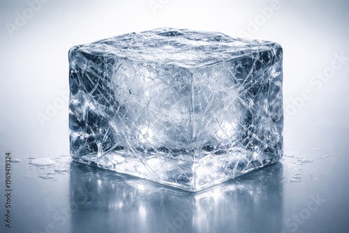 Frosty Texture Ice Block on Reflective Surface with Soft Lighting