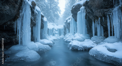 Frozen gorge stream winter landscape