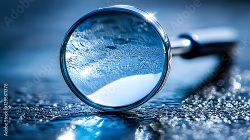 Frozen landscape magnified through magnifying glass