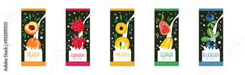 Fruit Milk Original Cover or Poster Design Vector Set