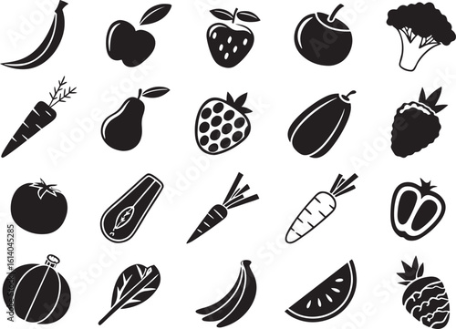 Fruits and Vegetables Icons on White Background Silhouette Style Collection